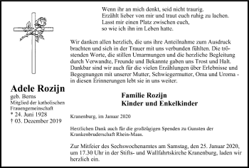 Anzeige Adele Rozijn geb. Berns