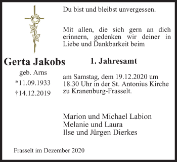 Anzeige Gerta Jakobs geb. Arns