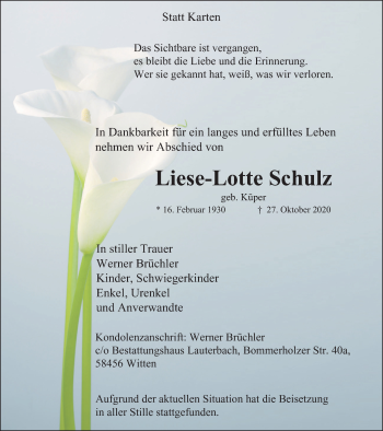 Traueranzeigen für den Suchbegriff "Lotte"