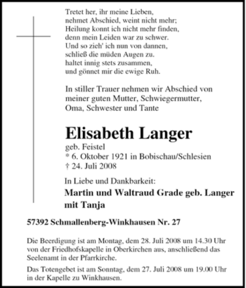 Zu Ihren Suchkriterien wurden 7932 Trauerfälle gefunden