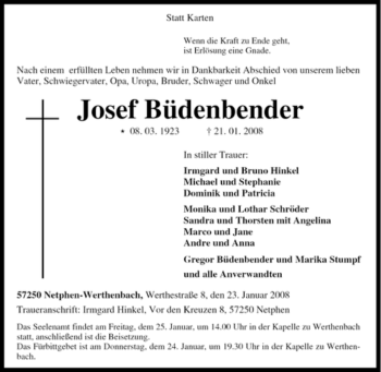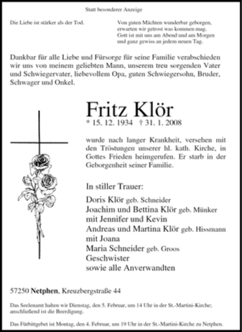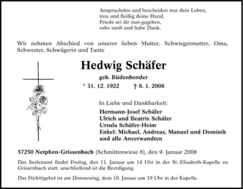 Traueranzeigen für den Suchbegriff "Netphen Hainchen"