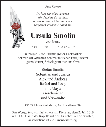 Anzeige Ursula Smolin geb. Gorny