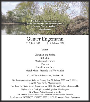 Anzeige Günter Engemann