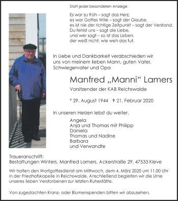 Anzeige Manfred Lamers