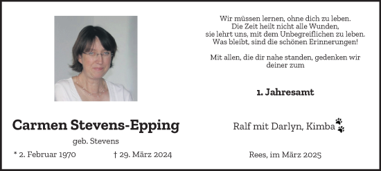 Anzeige Carmen Stevens-Epping geb. Stevens