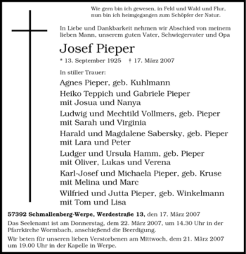Traueranzeigen für den Suchbegriff "Schmallenberg Lengenbeck"