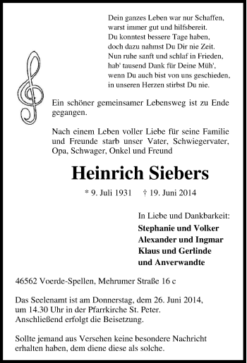 Anzeige Heinrich Siebers