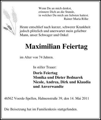 Anzeige Maximilian Feiertag