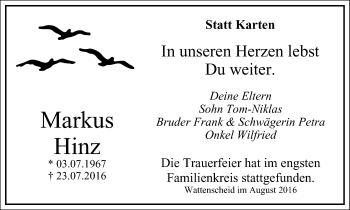 Zu Ihren Suchkriterien wurden 2312 Trauerfälle gefunden