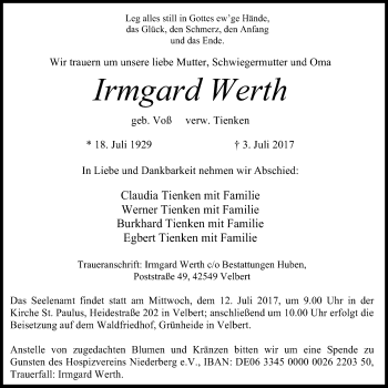 Anzeige Irmgard Werth geb. Voß