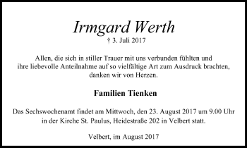 Traueranzeigen für den Suchbegriff "Werth"