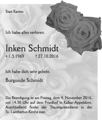 Traueranzeigen für den Suchbegriff "Wesel – Kalkar"